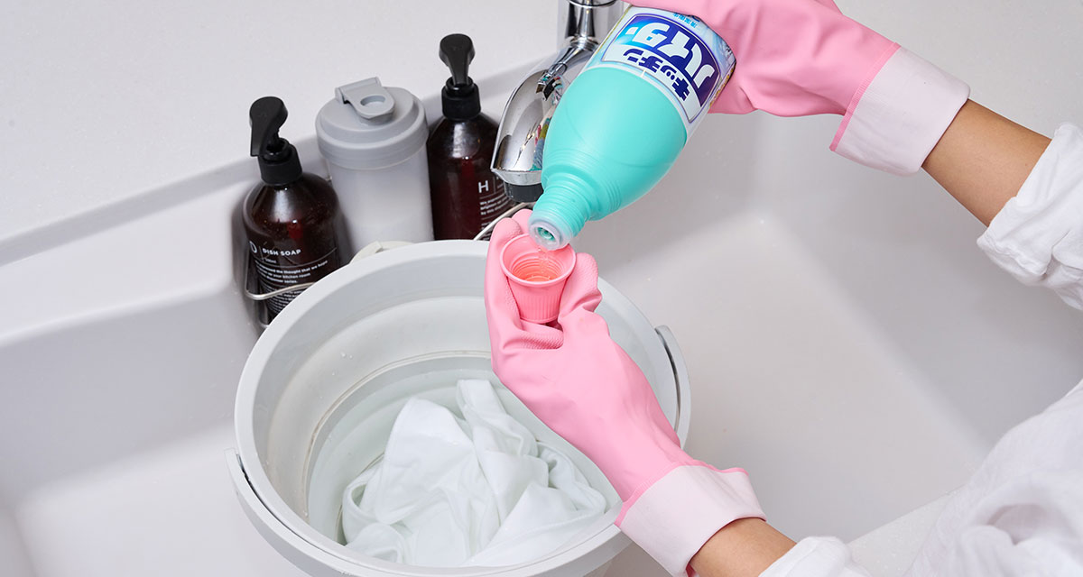 衣類を浸け置き消毒するためには、バケツで消毒液を作ります。